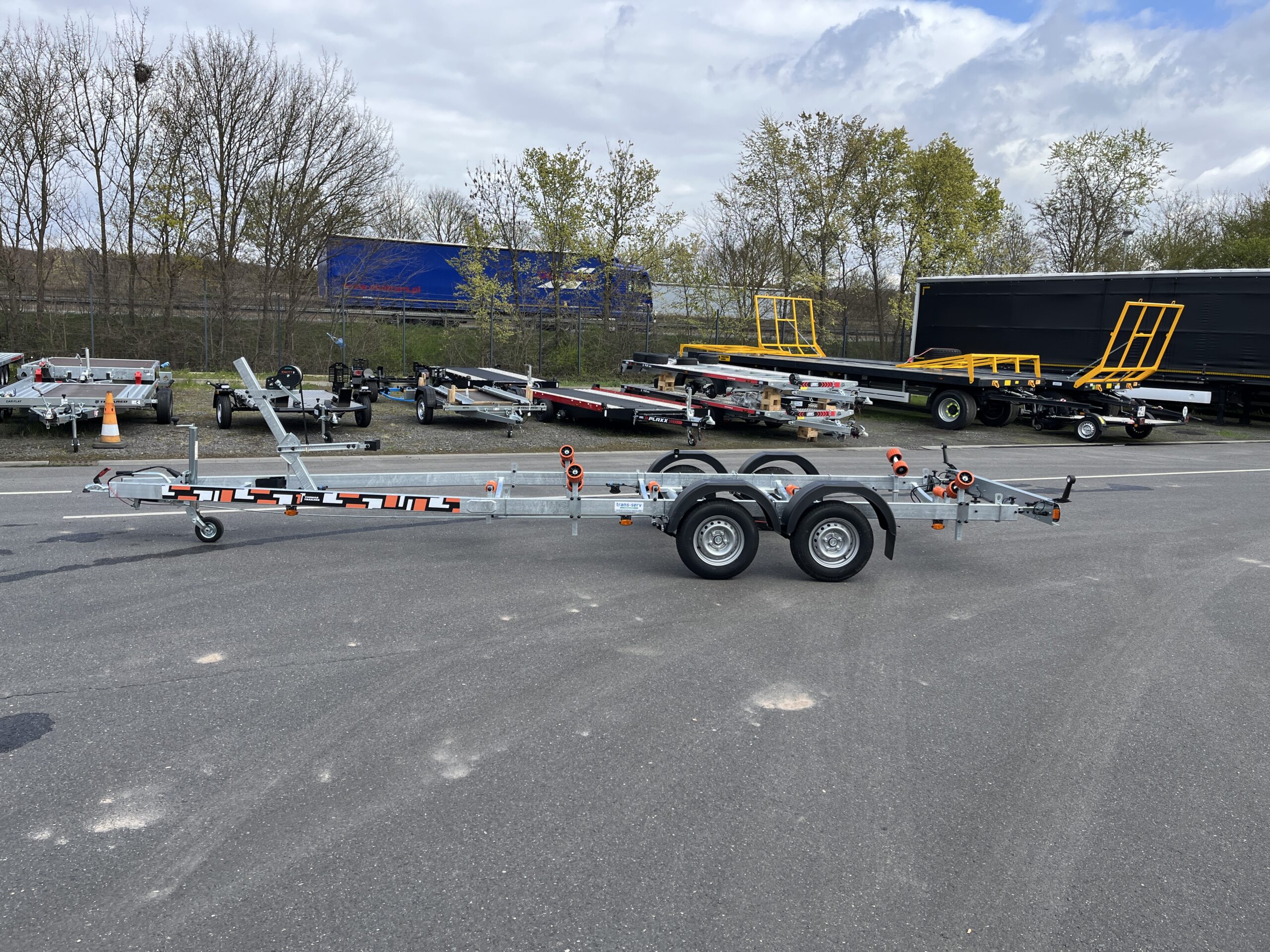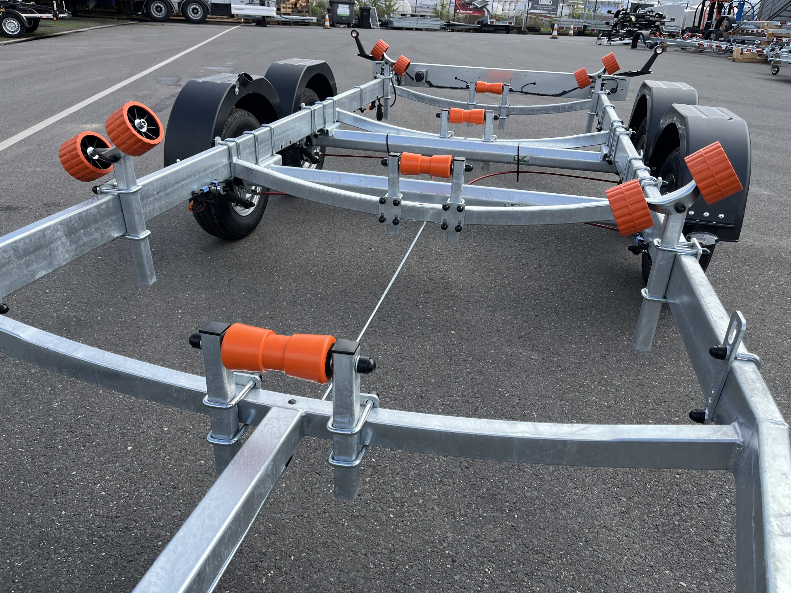 • Zwei-Achs 2500 kg Bootstrailer für den Transport von Booten bis 7 m Länge