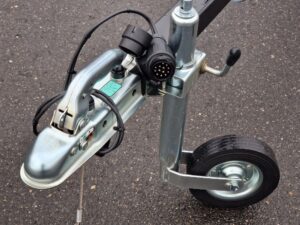 Zur Serienausstattung zählen eine KNOTT-Seilwinde mit Gurt und Haken, ein Stützrad mit Klemmhalter, eine vollständige 13-polige LED-Beleuchtungsanlage und Bereifung in der Größe 155/70 R13. Der Anhänger wird mit einer 100-km/h-Zulassung* und den erforderlichen COC-Dokumenten ausgeliefert.