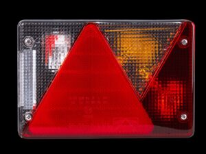 Die Multipoint IV Rückleuchte von ASPÖCK ist für den Einbau auf der rechten Fahrzeugseite vorgesehen und hat folgende Maße: Breite 200 mm, Höhe 136 mm, Tiefe 56 mm. Ausgestattet mit einem 5-poligen Bajonettanschluss ermöglicht es eine einfache und schnelle Installation in Anhängern, Bussen und Abschleppwagen.