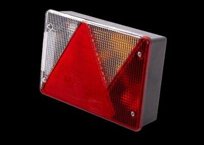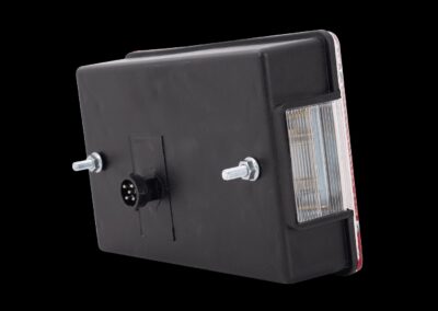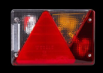 Die Multipoint IV Rückleuchte von ASPÖCK ist für den Einbau auf der rechten Fahrzeugseite vorgesehen und hat folgende Maße: Breite 200 mm, Höhe 136 mm, Tiefe 56 mm. Ausgestattet mit einem 5-poligen Bajonettanschluss ermöglicht es eine einfache und schnelle Installation in Anhängern, Bussen und Abschleppwagen.