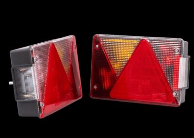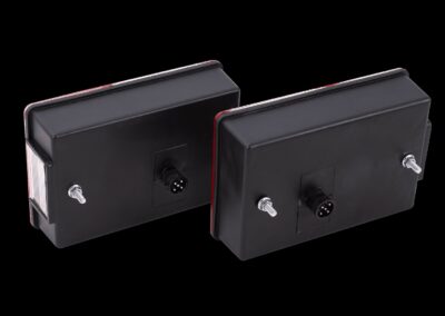 Das Multipoint IV Rückleuchten Set von ASPÖCK ist für den Einbau auf der linken und rechten Fahrzeugseite vorgesehen und hat folgende Maße: Breite 200 mm, Höhe 136 mm, Tiefe 56 mm. Ausgestattet mit einem 5-poligen Bajonettanschluss ermöglicht es eine einfache und schnelle Installation in Anhängern, Bussen und Abschleppwagen.
