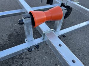 Die Kielrollen erleichtern das Slippen und transportieren von Booten. Die Kielrolle wird mittels Bügelschrauben an der Quertraverse montiert.