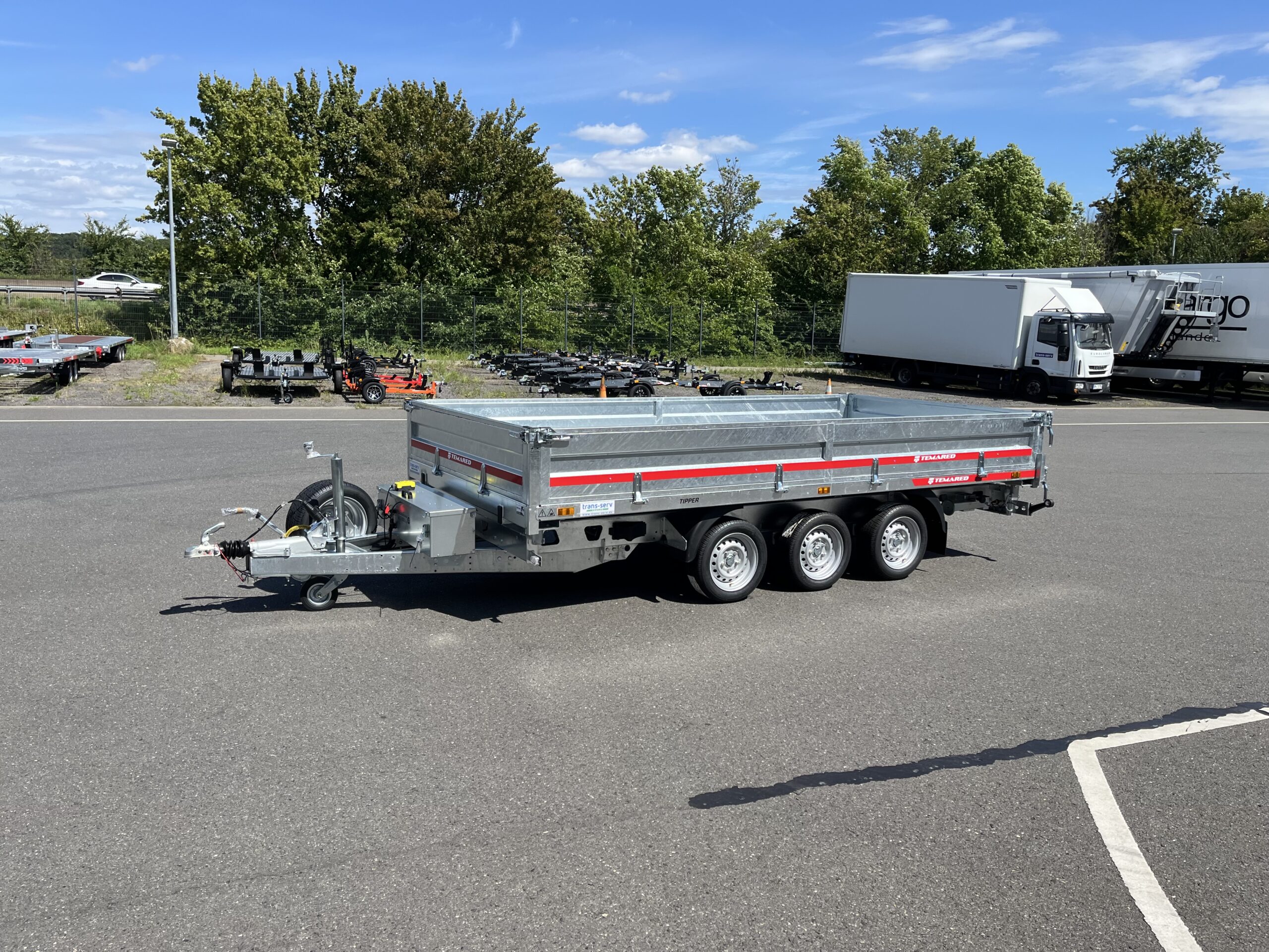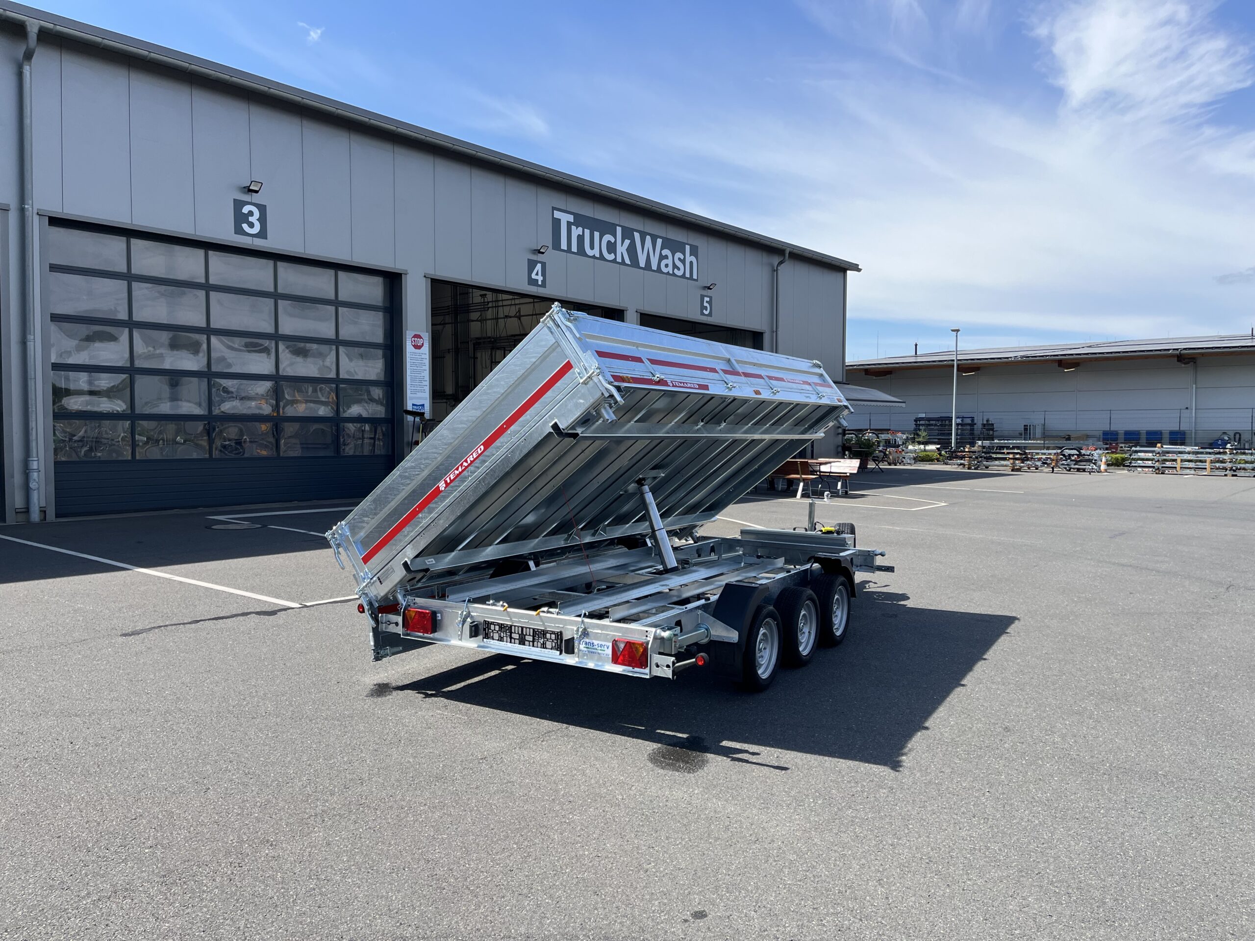 - Dreiseitenkipper mit elektrischer Hydraulikpumpe und Stahl-Bordwänden