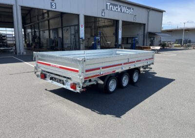 - Alle Bordwände klappbar – hintere Bordwand pendelbar