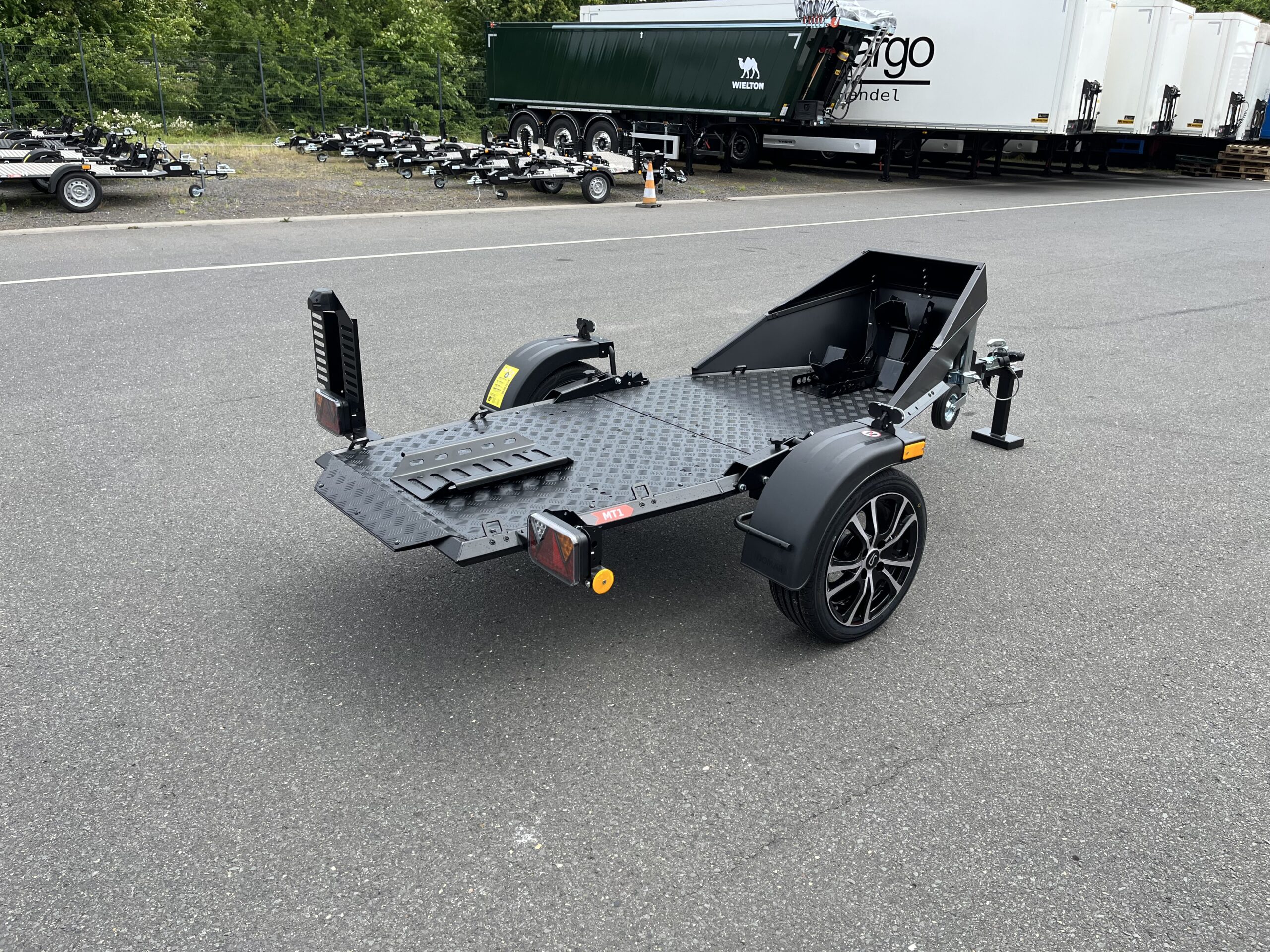 Der MT-1 ist ein spezieller leichter einachsiger Anhänger für den Transport von Motorrädern mit einem zulässigen Gesamtgewicht von bis zu 750 kg.