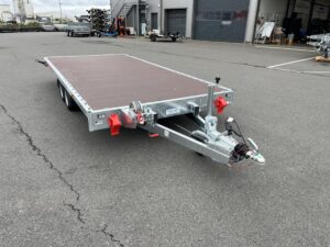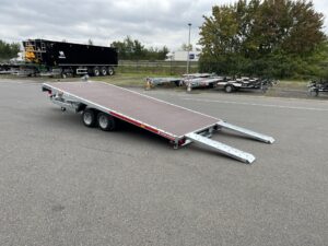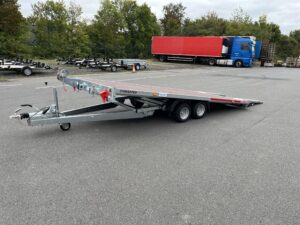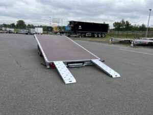 - Kippbarer Autotransportanhänger mit Anlegerampen und vollem Boden, 100 km/h Zulassung