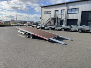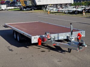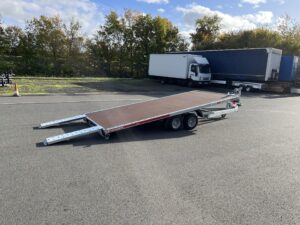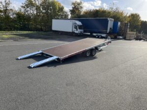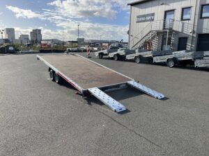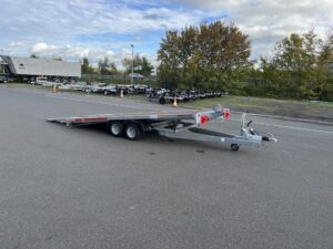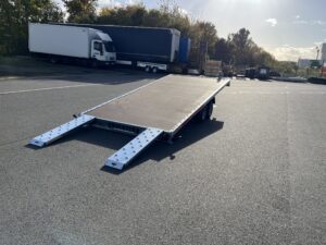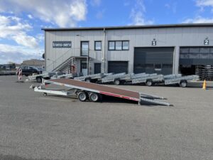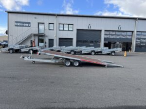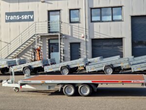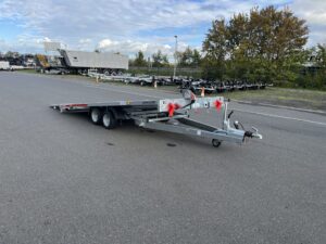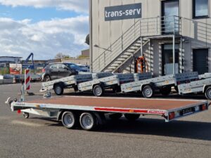 - Kippbarer Autotransportanhänger mit Anlegerampen und vollem Boden, 100 km/h Zulassung