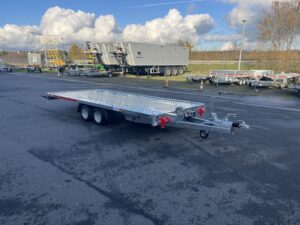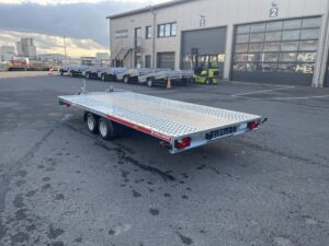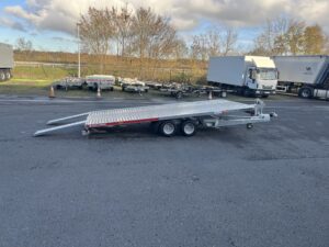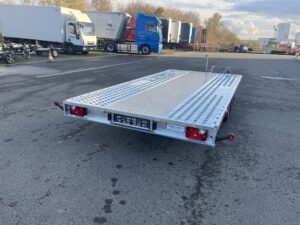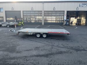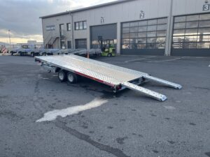 - Kippbarer Autotransportanhänger mit Anlegerampen, 100 km/h Zulassung